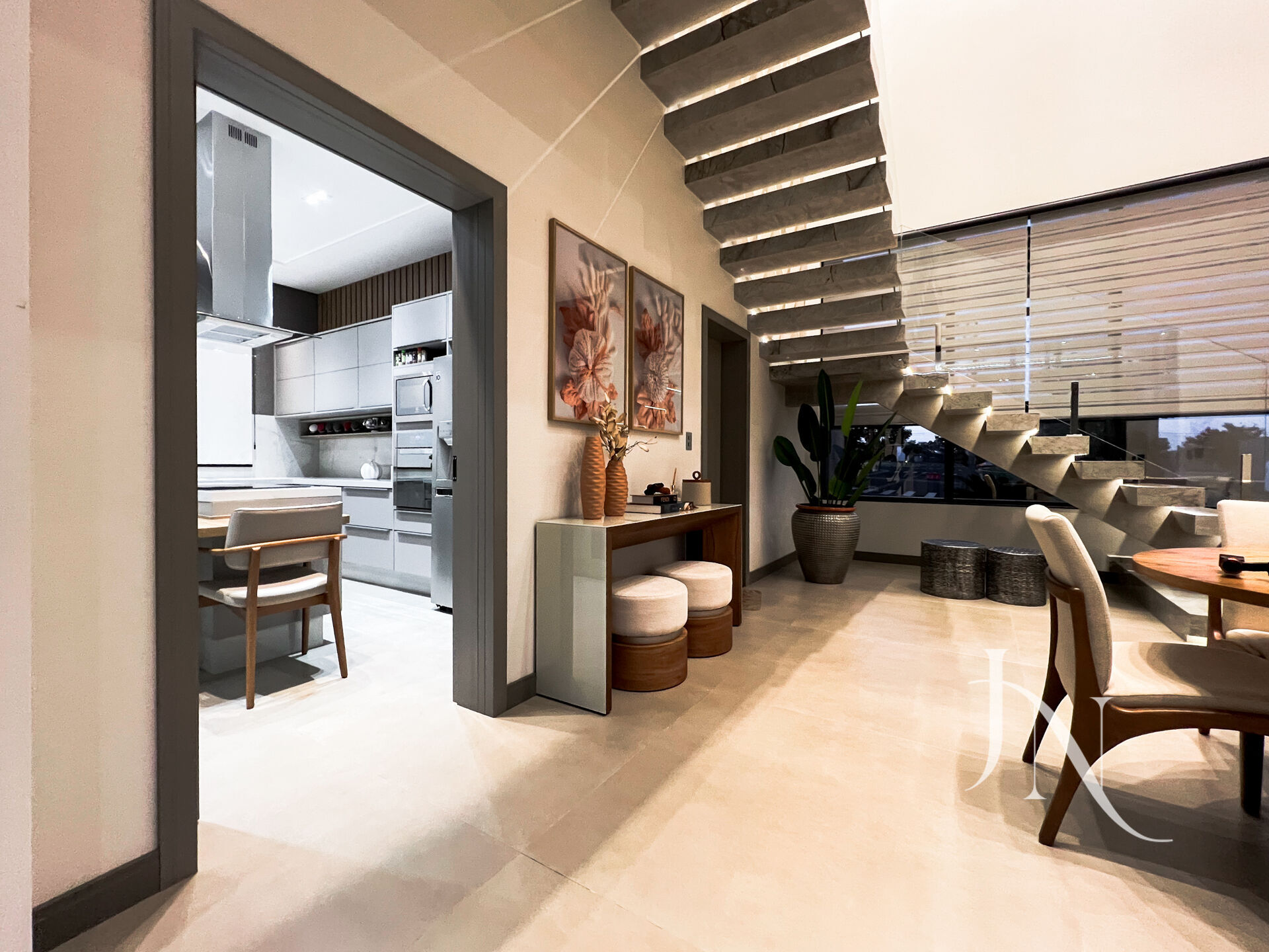 💫 PARTE INFERIOR – 1 suíte, sala de estar aconchegante, lavabo, cozinha moderna, lavanderia, despensa e área gourmet integrada à piscina!