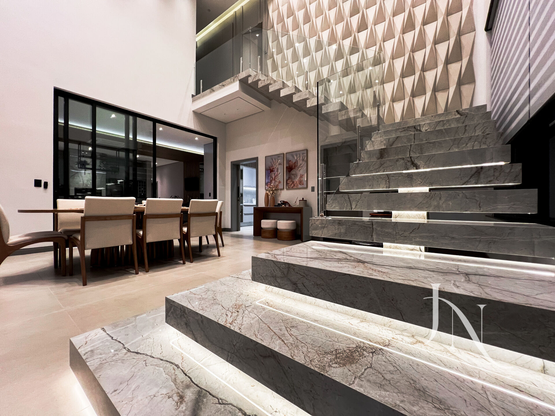 ✨ Acabamentos de alto padrão – louças e metais super luxo, além de porcelanatos em grandes formatos (lastras) nos detalhes como bancadas, escadas e muito mais
