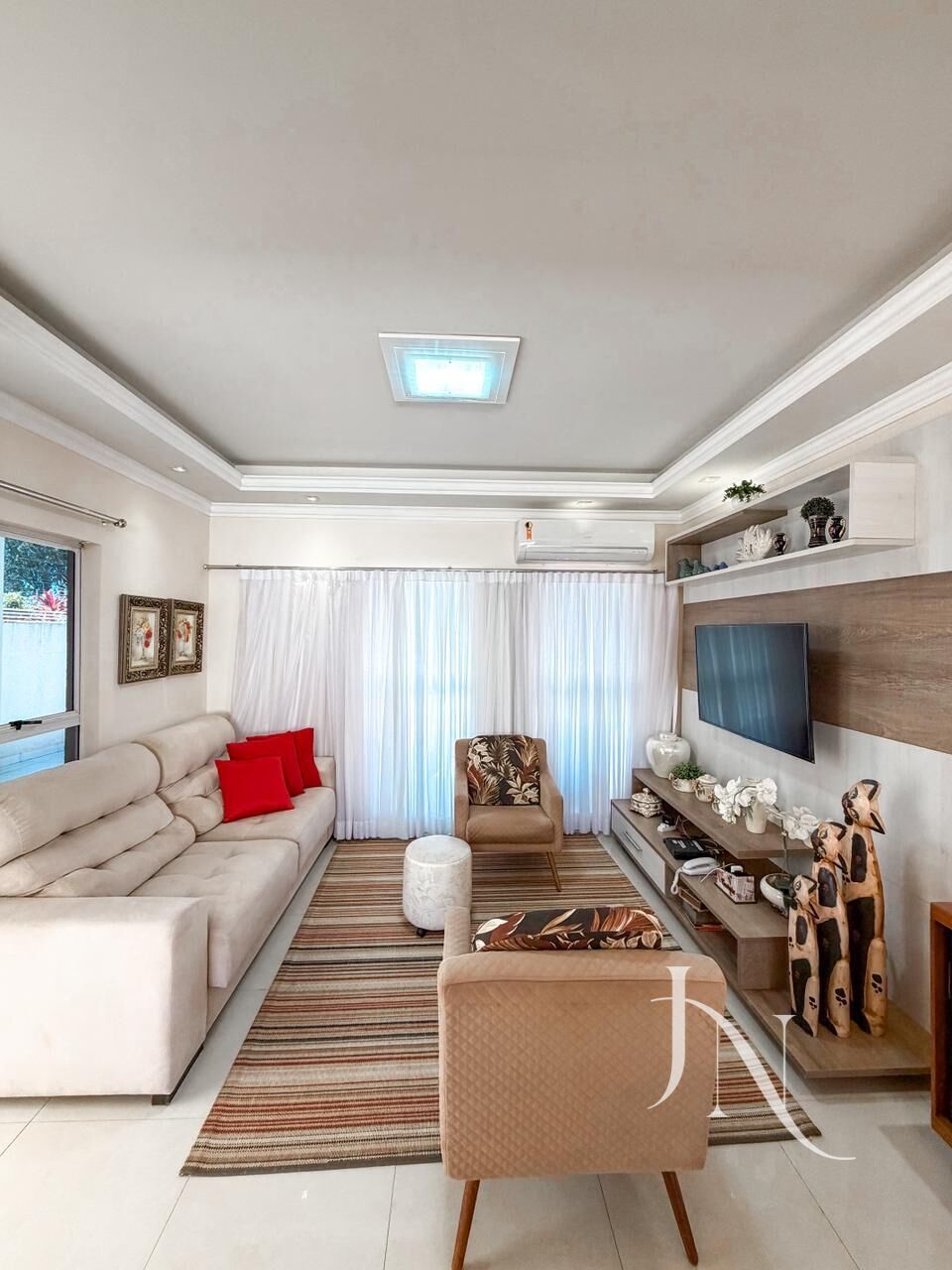 ✔️ Sala de tv e sala de jantar com lustre